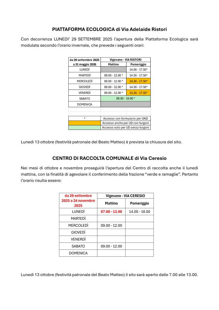 Centro di Raccolta – Via Ceresio