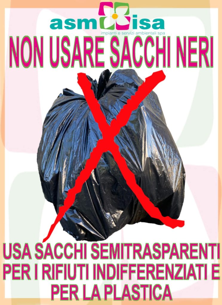 ?NON usare mai sacchi neri?USA sacchi semitrasparenti per i rifiuti indifferenziati e per la plastica